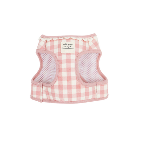 Pet Harness and Leash Set: Country Chic Pink Gingham Breathable Mesh